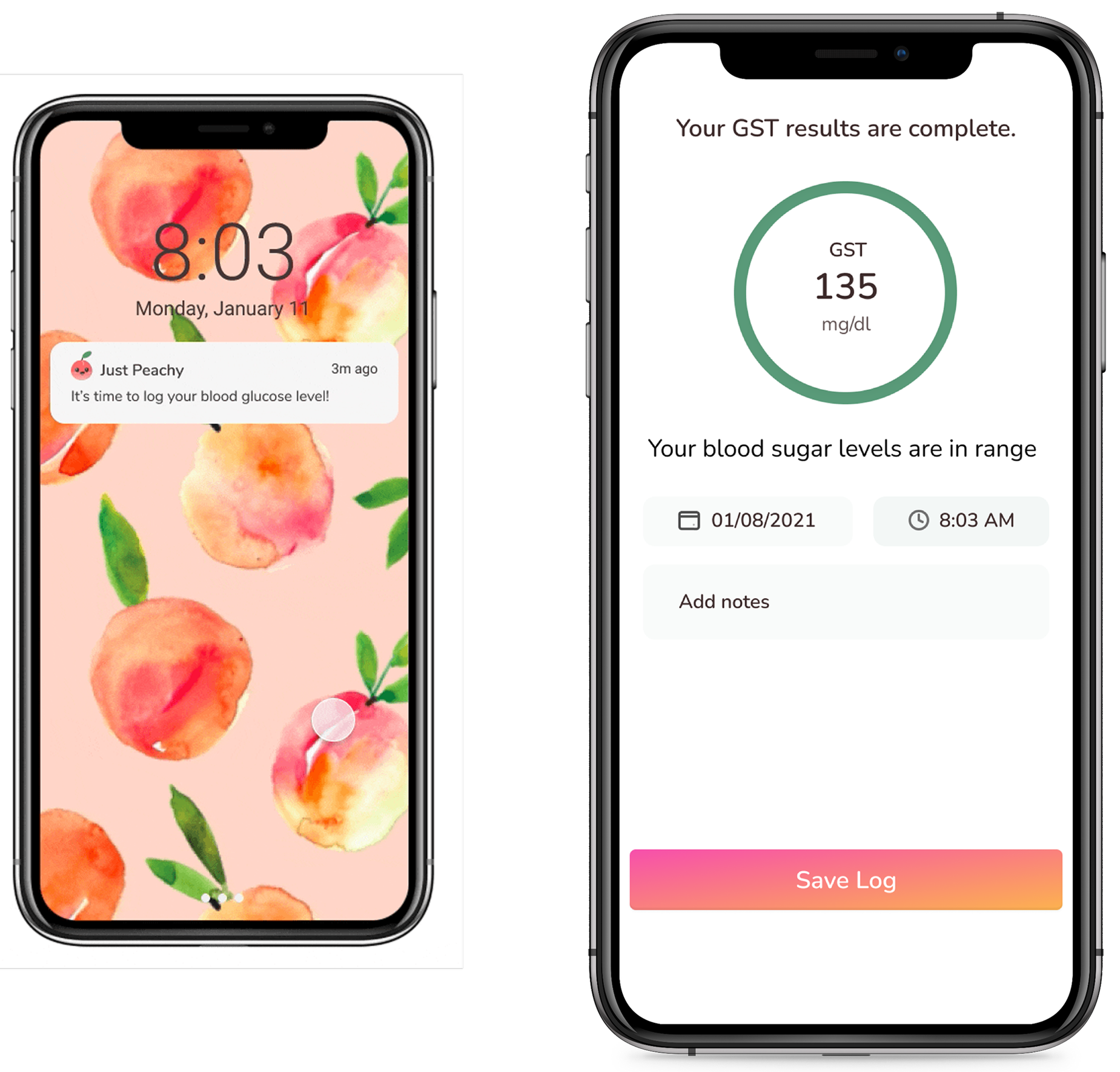 Push notifications keep her on track throughout the day for glucose and food logging.